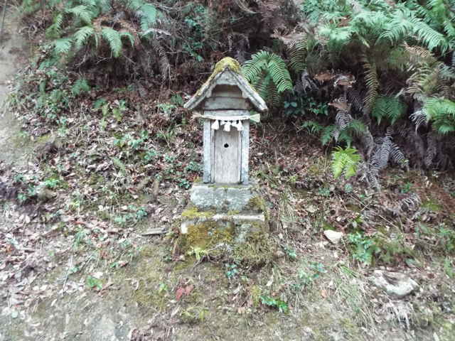 | 参道脇の林内に荒神がある。 | 左の分岐は大日堂へ下りる。 | |