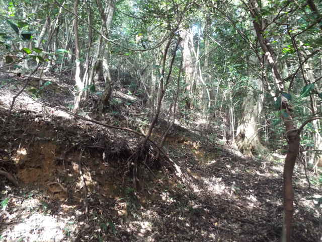 | 墓地の前を左へ上がる。 | 急斜面をつづら折れに登る。 | |