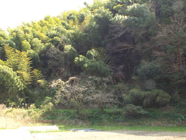 | 墓地の先へ踏み跡がある。 | 急斜面の下に平場がある。 | |