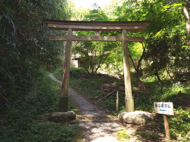 宍道町白石の木次線南宍道駅の近くから要害山登山道を上がると、すぐ鳥居があります。さらに登山道を上がると、頂上の手前に旧社地があります。 「当社は大字白石金山の要害山城跡にあったが終戦後麓におろし信仰する。古老伝に旧佐々木正慶の氏神にして崇敬他に異なりしと云う即佐々木氏(宍道氏の祖)の城跡に安置す城主歿落後此の部落の氏神にすと云う。山城国石清水八幡宮、仝天王山山崎八幡宮の分霊勧請」(神国島根) 雲陽誌に、「八幡宮 金山村勧請」とあります。