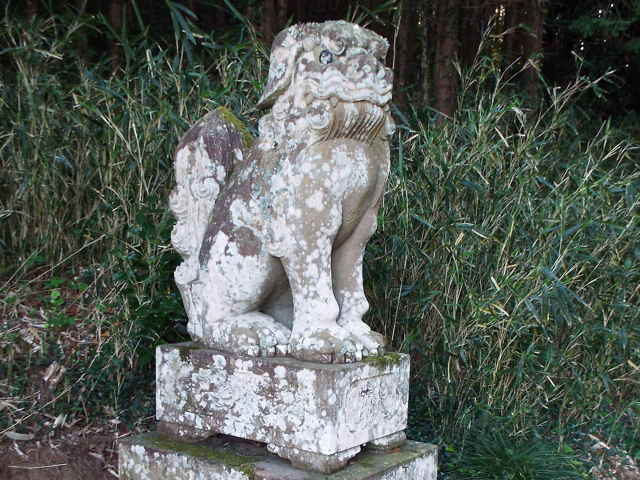 | 短い石段を上がる。 | 平成二年の狛犬 | |