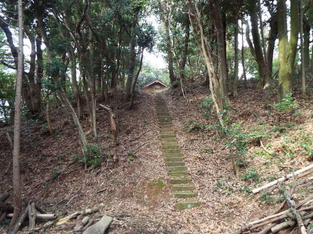 | 植林内へ径がある。 | 急な石段が上がっている。 | |