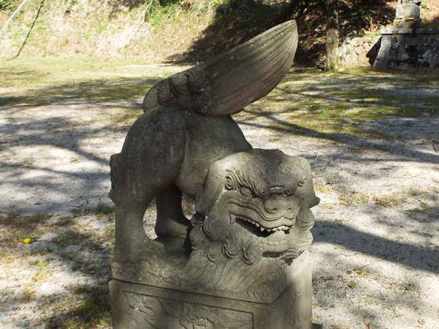 東忌部町大川端の慈恩寺の近くにあります。境内は遊園地になっています。 「従来境内は森林に囲まれし古木に祭り来りしも大正の初伐採し社地を整理して公園式の現形となし、神体を巨大なる碑石となし玉垣を囲らし、拝殿を新築し同時に両側に全部落内の地主塚水神荒神歳徳神も合祀せり。」(忌部村誌) 「大川端地区と熊山地区に鎮座する三寶大荒神 両荒神とも素盞鳴尊を祀る。創立は1000年以上も前と伝える。33年目ごとに行われる式年の荒神神楽があり、17時間に及ぶ夜を徹しての神楽である。大川端は2014年に第43回目、熊山は2020年4月に第44回目を数える。言い伝えによると、神代の昔、天照大神が天の岩屋戸お隠れになったとき、天照大神のお出ましを願うため、天宇豆売命が舞を舞うことになったが、そのときの琴・太鼓の革は両地区の牛の皮を用いたとされている。」(忌部公民館パンフレット) 延喜式: 主祭神:素盞鳴尊 境内社: