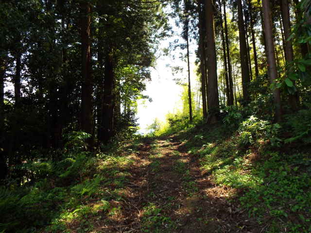 | 熊野大社裏側の林内を進む。 | 尾根の先端に向かう。 | 大きな3本の木がある。 |