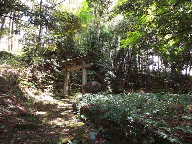玉湯町林の根尾地区の根尾公民館近くの十字路から南へ上がって行き、集落を過ぎて林内へ入ると、「元宮さま」と案内標識があります。