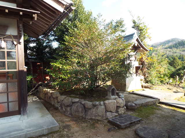 | 社殿横の榊の木 | 榊の木の下の猫神さん | |