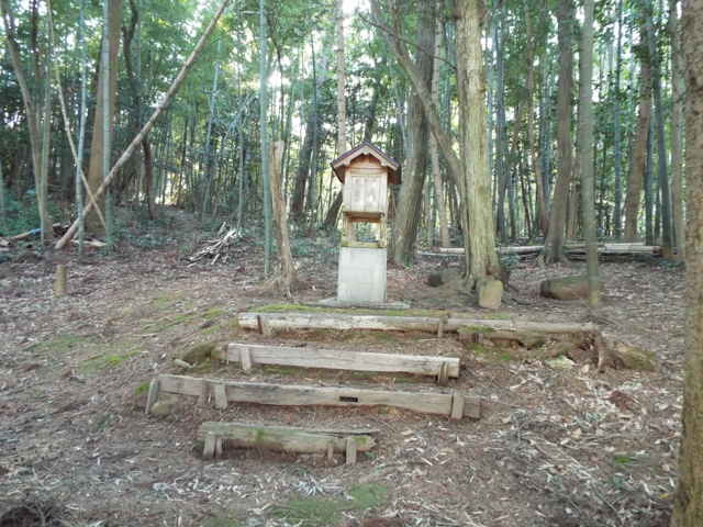 熊野大社を南へ過ぎ、八雲山登山口のある岩室へ向かって谷を上っていきます。登山道入口を過ぎて更に上っていくと、萱野の集落があります。ここから南へ道を入ると林内へ径があり、小さな神社があります。棟札があったので、神社名などがわかりました。